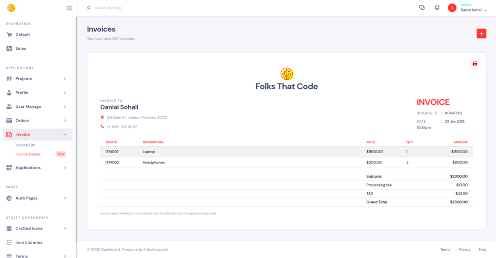- Integrated Analytics with ApexCharts: Visualize your data effectively with ready-to-use ApexCharts integration, providing interactive and insightful charts for your dashboard.